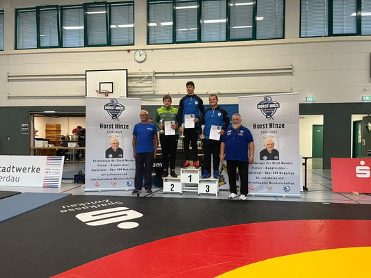Einen schweren Stand hatte in der Gewichtsklasse bis 79 kg Freistil Anton Thate, der nach zwei Niederlagen ausschied. Jedoch zeigte Anton großen Kampfgeist und sammelte weiterhin Erfahrung. Finn Weiß bis 61 kg Freistil zeigt sich in guter Form und holt sich mit drei Siegen und nur einer knappen Niederlage einen sehr starken 3. Platz. Eine Gewichtsklasse über seiner normalen Gewichtsklasse bis 86 kg Freistil startete Lucas Kahnt. In seinem Pool ging Lucas souverän durch und ließ seinen Gegnern keine Chance. Im Finale traf er auf Khamzat Eldarov vom SC Siegfried Kleinostheim und musste sich nach Punkten geschlagen geben, somit holt sich Lucas die Silbermedaille. In der Gewichtsklasse bis 125 kg Freistil ging Emil Thiele für uns auf die Matte. Nach einem technisch überlegen Sieg ging es dann gegen Lucas Gansi vom 1. Luckenwalder Sportclub um Gold. In einen knappen, aber von Emil taktisch gut geführten Kampf, ging unser Sportler mit einem 2:0 Sieg von der Matte und darf sich jetzt Mitteldeutscher Meister bis 125 kg Freistil 2025 nennen.