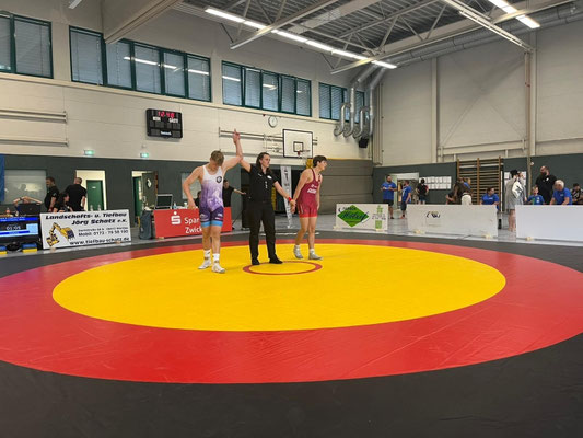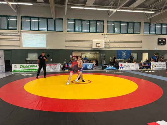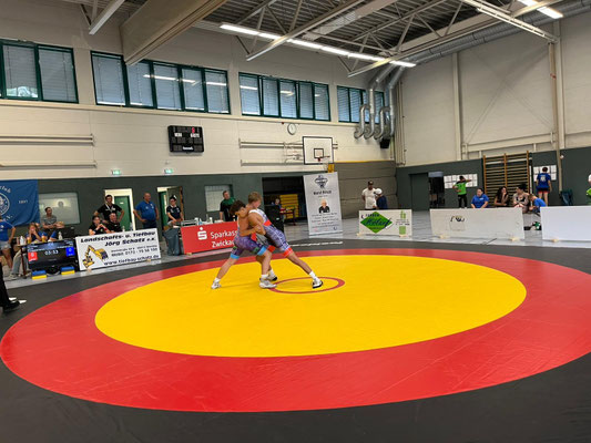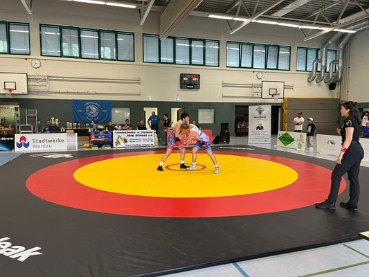 Mit einem 6:0 Punktsieg gegen Jeremy Weinhold (SVG 04 Weingarten) sicherte er sich den Finaleinzug und traf dort auf Pouria Taherkhani vom ASV Mainz 88. In einem engen Finale hatte der Mainzer Ringer das bessere Ende und Lucas verlor knapp mit 5:2. Somit aber eine starke Silbermedaille…