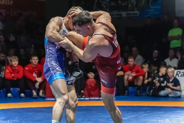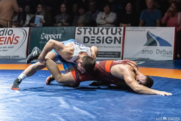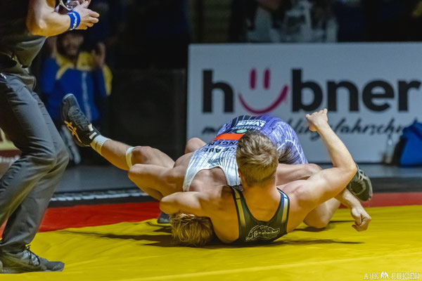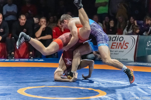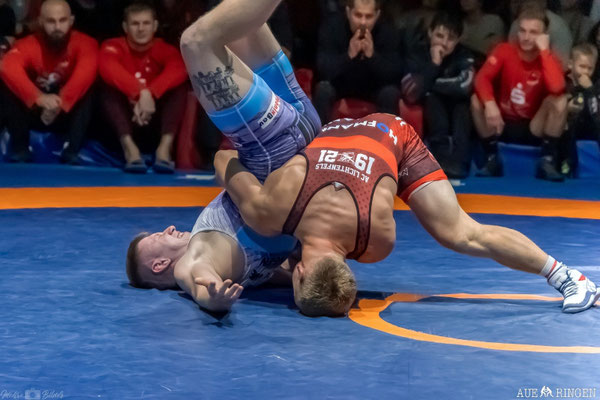 Nun stand der nächste Höhepunkt an. Vasile Diacon, unser moldawischer Neuzugang, zeigte ebenfalls großes Freistilringen. Er rollte Justin Müller innerhalb von 40 Sekunden zum technischen Überlegenheitssieg.