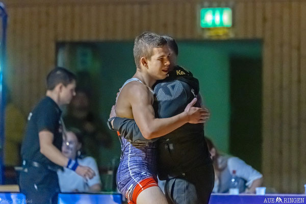 Dann wurde es emotional. Marco Stoll, zu Saisonbeginn von Markneukirchen nach Aue gewechselt, bekam es mit Serdar Durmus zu tun. In einem harten Fight setzte er sich mit 7:3 durch und holte sich dabei einige Blessuren ab.